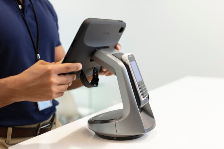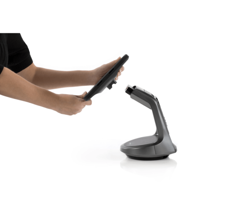 NE360C una funzione di ricarica integrata che consente di ricaricare tablet, scanner, terminali di pagamento o altre periferiche mentre sono collegati al supporto, in modo che siano sempre pronti all'uso.