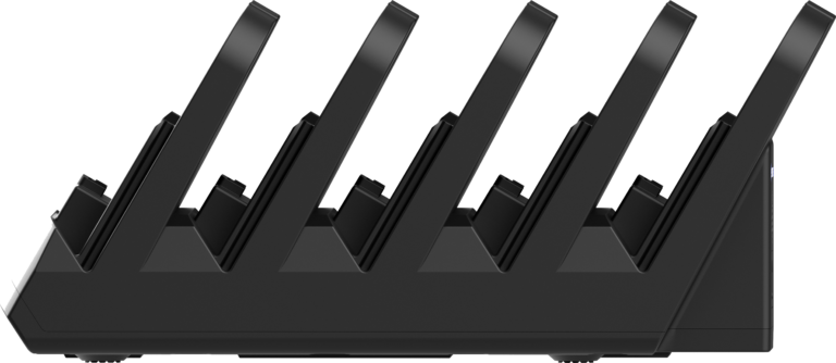 Una singola batteria alimenta sia il tablet che il terminale di pagamento, mentre un caricatore a 5 alloggiamenti mantiene le batterie di ricambio pronte per la sostituzione immediata, senza tempi di inattività né interruzioni.